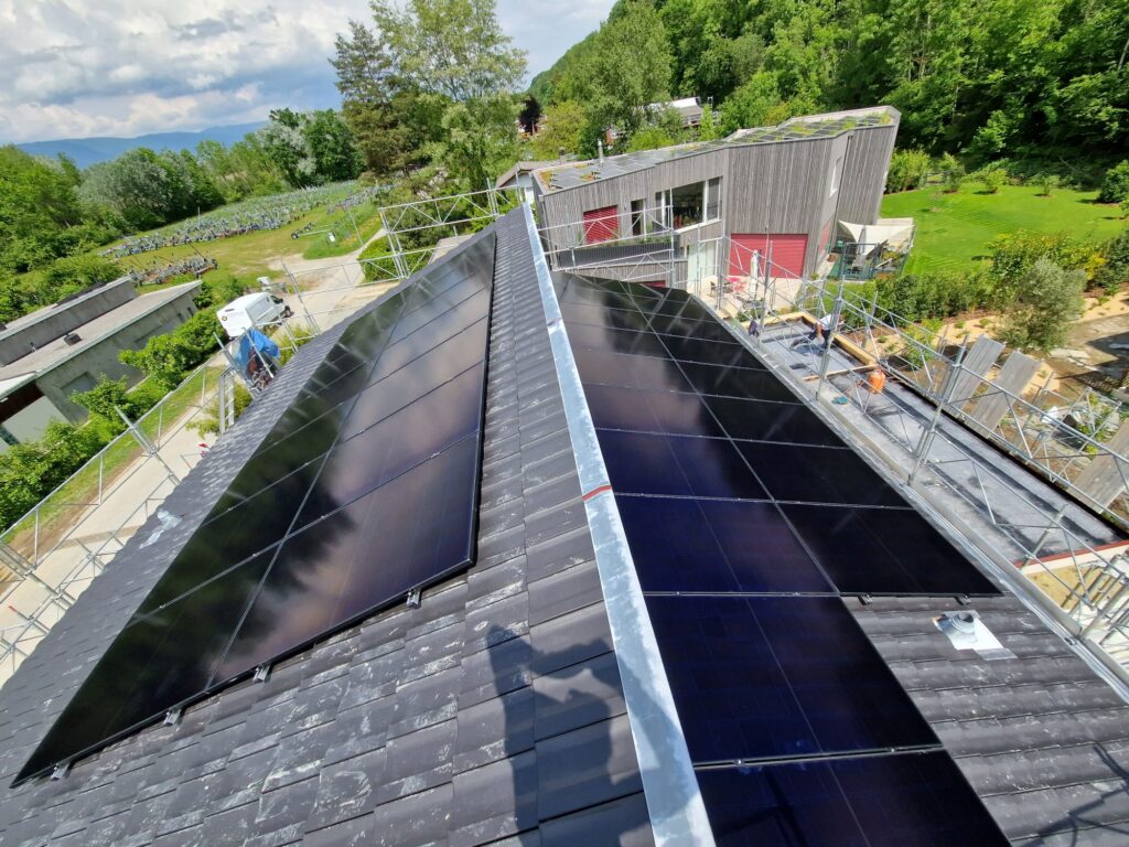 Installation de 17,4Kwp à La Roche (FR) pour une production annuelle de près de 19’000KWh, utilisation d’optimiseurs de puissance, raccordement en communauté d’autoconsommation de manière à permettre à tous les habitants du bâtiment de profiter de cette installation.