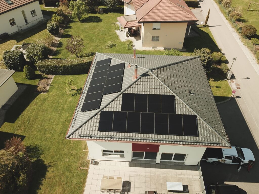 Installation de 14,52KWp à Vuippens, production annuelle de 17’000KWh, utilisation d’optimiseurs de puissance, et des panneaux fullblack pour une esthétique parfaite. les panneaux et les optimiseurs sont garantis 25ans.